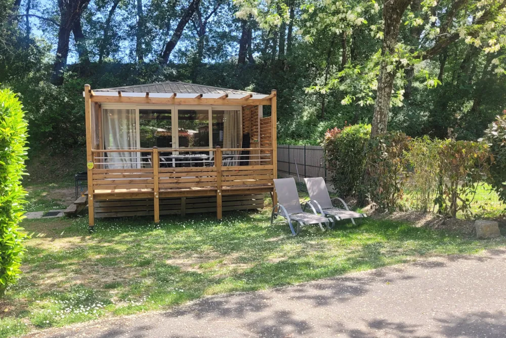 Mobil home très propre et bien équipé, terrasse agréable.