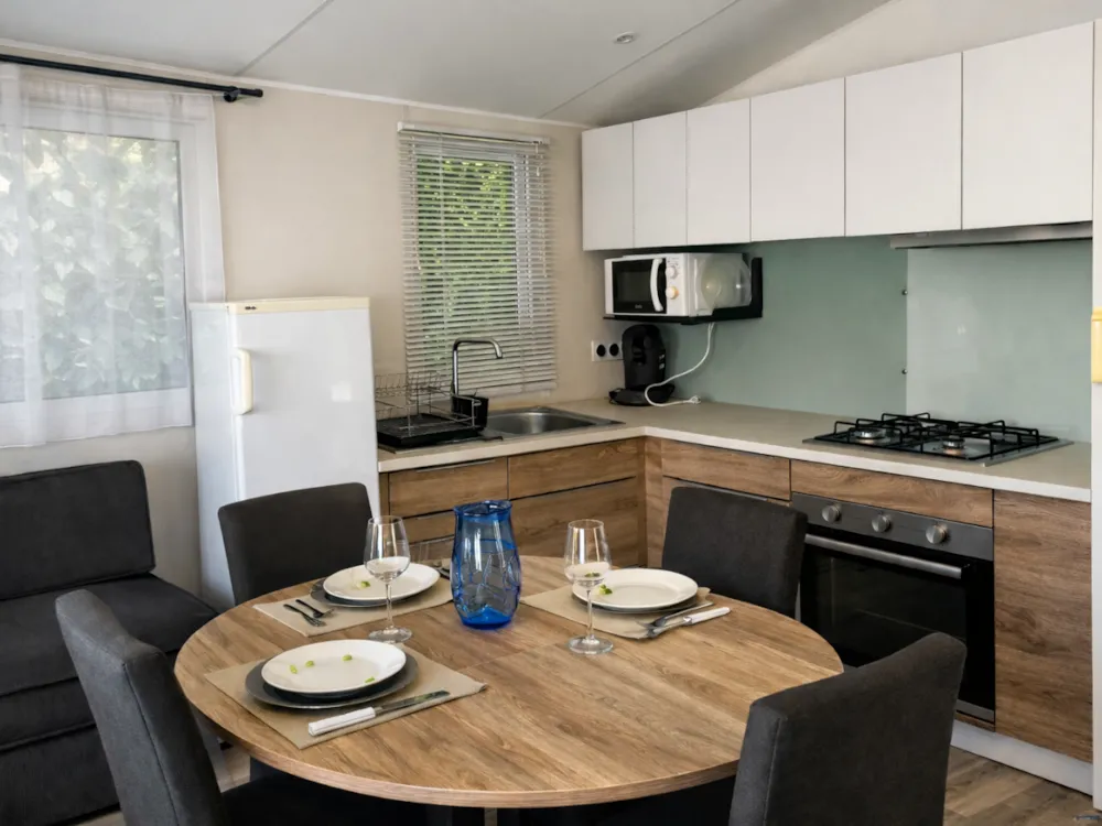 Confort et praticité : Parfait pour des vacances agréables et sans tracas. Il peut accueillir jusqu'à 2 personnes et offre tout le nécessaire pour un séjour confortable : cuisine équipée, salle de bain moderne et espace salon convivial. Idéal pour ceux qui recherchent un hébergement fonctionnel et abordable, il combine confort et simplicité pour des moments de détente en famille ou entre amis.