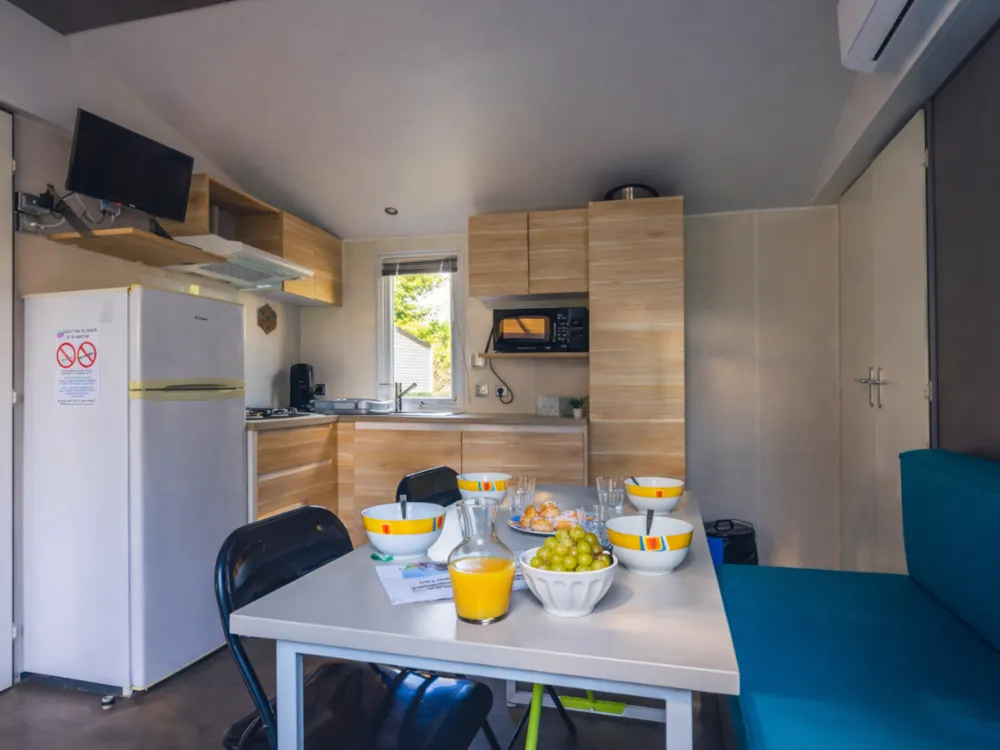 Confort et praticité : Parfait pour des vacances agréables et sans tracas. Il peut accueillir jusqu'à 5 personnes et offre tout le nécessaire pour un séjour confortable : cuisine équipée, salle de bain moderne et espace salon convivial. Idéal pour ceux qui recherchent un hébergement fonctionnel et abordable, il combine confort et simplicité pour des moments de détente en famille ou entre amis.