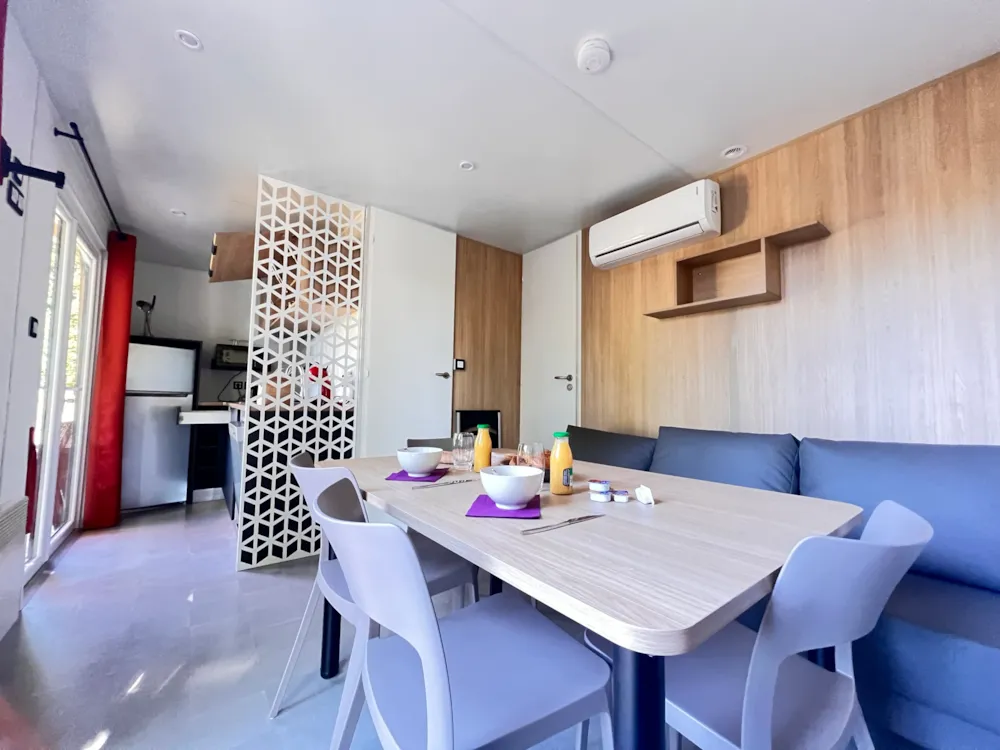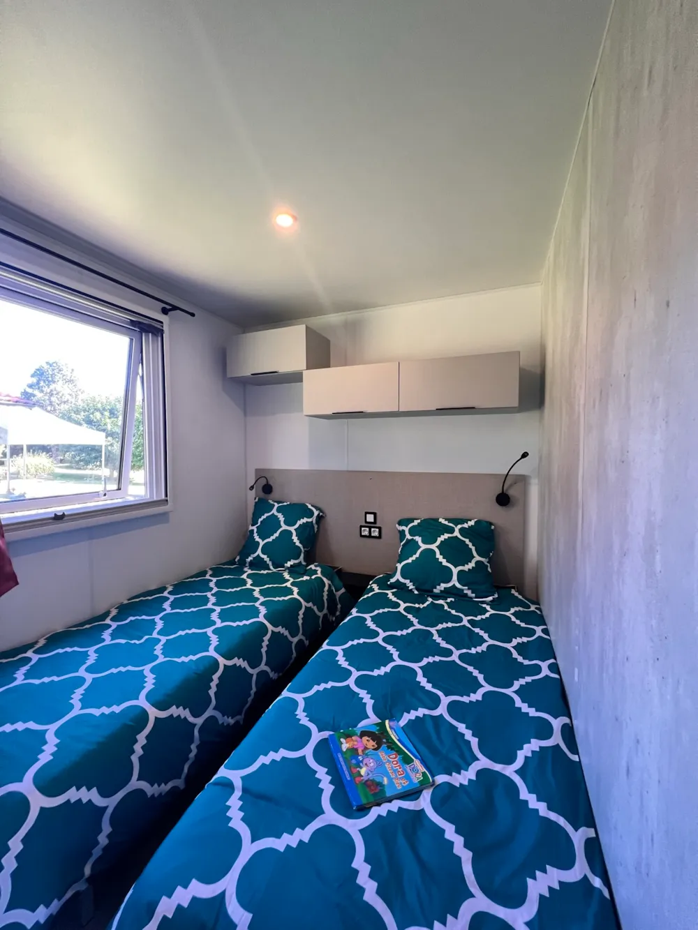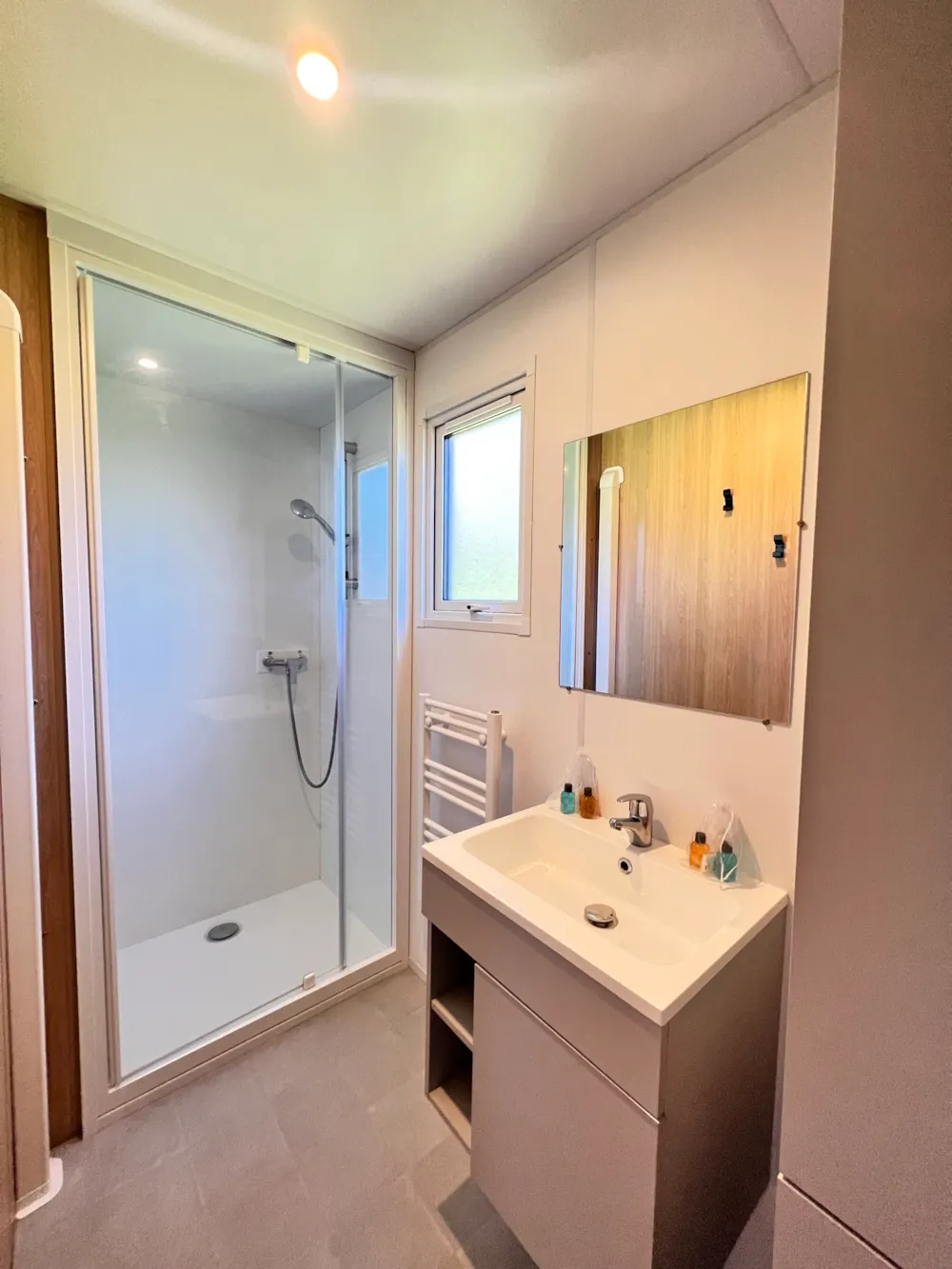 Jolie pataugeoire à côté de deux toboggans pour les plus grands et une piscine couverte.